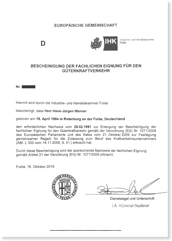 - Verkehrsleiter (Fachliche Eignung IHK nach GüKG/EG VO 1071/2009)